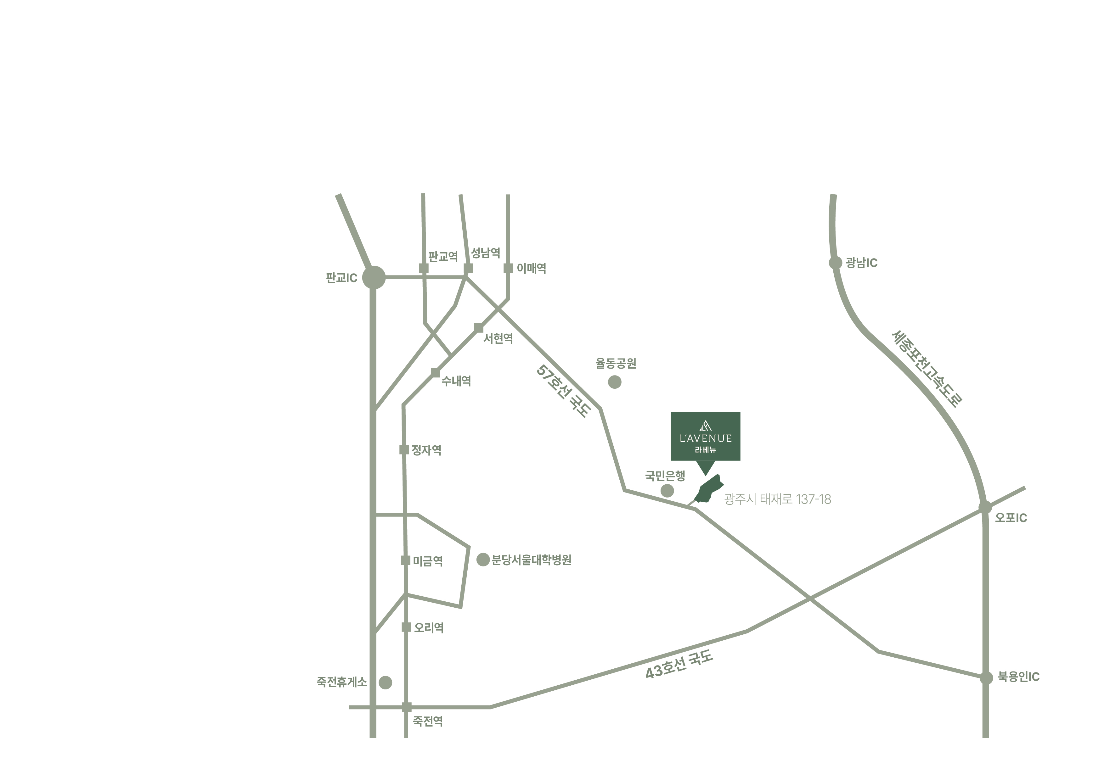 신분당선 판교역에서 1150번, 1151번, 1500-2번 버스 타고 능평119안전센터에서 하차